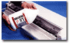 - Turn motor on, insert edge of print into rollers (factory-set space keep rollers apart, so you never get adhesive on the image).